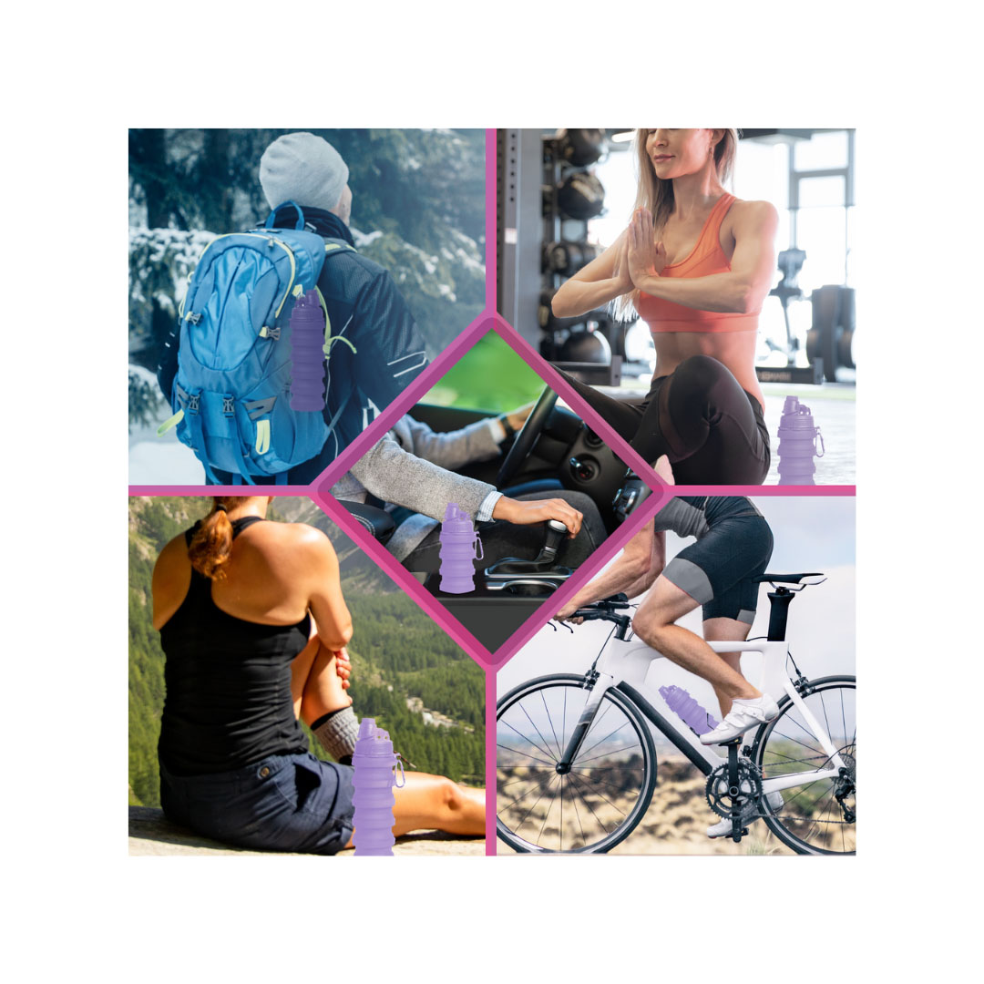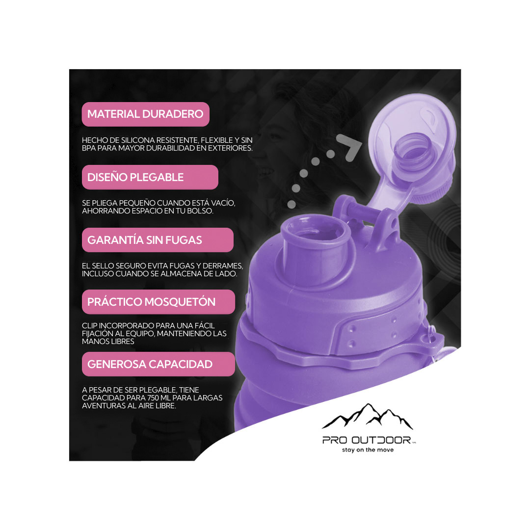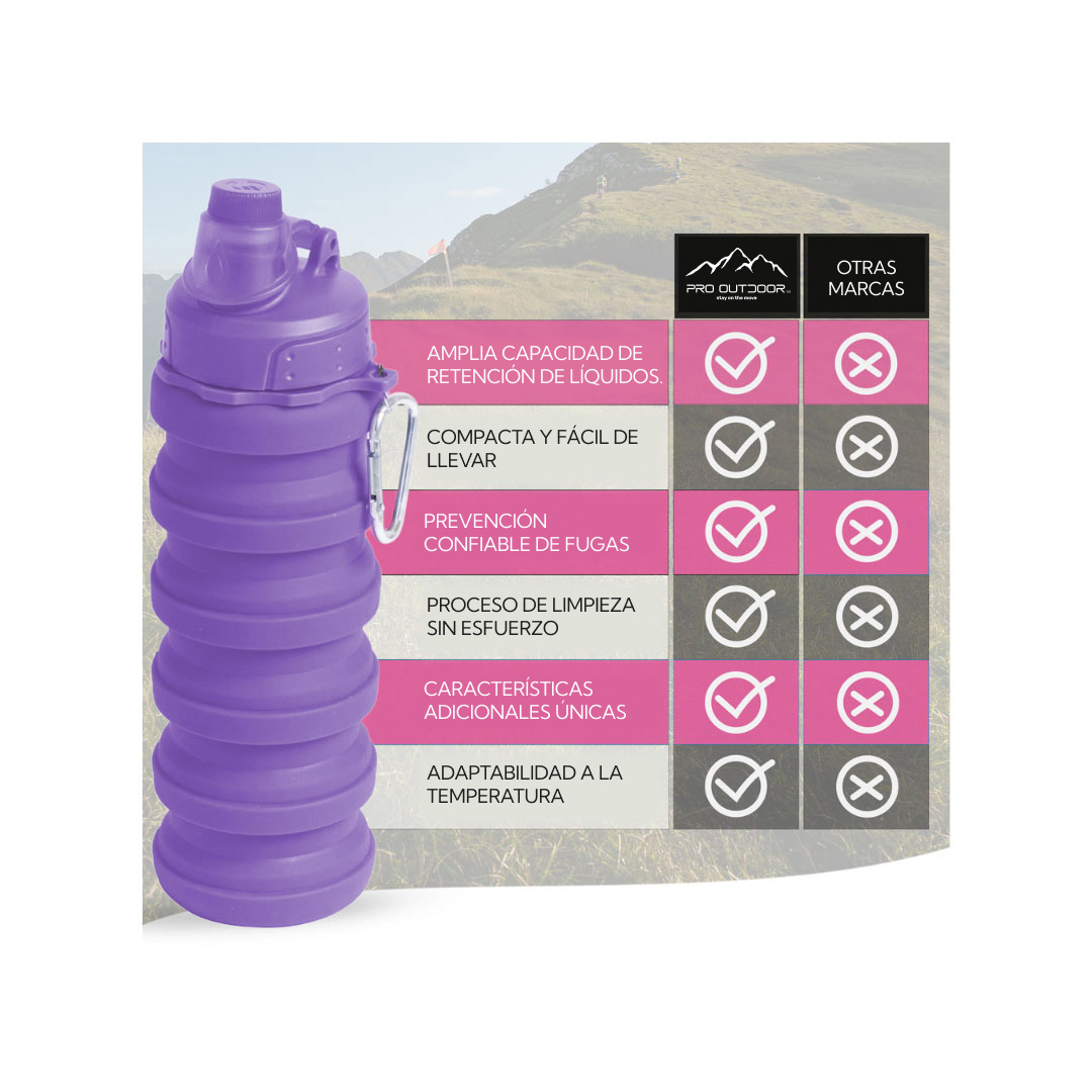 MATERIAL SALUDABLE Y SEGURO: Hecho de silicona SIN BPA, APROBADO para garantizar un consumo seguro, no tóxico. Adecuado para agua o bebidas calientes. No recomendamos usarlo para líquidos que superen los (60°C) para evitar quemar su mano. MATERIAL SALUDABLE Y SEGURO: Hecho de silicona SIN BPA, APROBADO para garantizar un consumo seguro, no tóxico. Adecuado para agua o bebidas calientes. No recomendamos usarlo para líquidos que superen los (60°C) para evitar quemar su mano. DISEÑO PLEGABLE Y AHORRO DE ESPACIO: La botella de agua plegable de silicona puede guardar 550 ml de líquido con solo 198 gramos de peso. Se puede plegar de 22 cm a 12 cm de altura. El diseño plegable y liviano le permite ahorrar un 50% de espacio, portátil y más fácil de almacenar. Ideal para niños, niñas, mujeres, hombres. PERFECTO PARA VIAJES Y DEPORTES: La botella de agua de silicona plegable, flexible y duradera a prueba de roturas equipada con un mosquetón de aleación de aluminio, puede engancharla a la mochila o al bolso de gimnasia y llevarla a todas partes. Ideal para viajes, gimnasio, bicicletas, correr, acampar, pescar, caminar, escalar, yoga, playa, deportes al aire libre, entre otros. A PRUEBA DE FUGAS Y FÁCIL DE LIMPIAR: La botella de agua está diseñada con un anillo de sellado de silicona para evitar fugas. El diseño de boca ancha hace que las botellas de agua plegables sean más fáciles de limpiar el interior o agregar hielo o limones por ejemplo. DISEÑO PLEGABLE Y AHORRO DE ESPACIO: La botella de agua plegable de silicona puede guardar 550 ml de líquido con solo 198 gramos de peso. Se puede plegar de 22 cm a 12 cm de altura. El diseño plegable y liviano le permite ahorrar un 50% de espacio, portátil y más fácil de almacenar. Ideal para niños, niñas, mujeres, hombres. PERFECTO PARA VIAJES Y DEPORTES: La botella de agua de silicona plegable, flexible y duradera a prueba de roturas equipada con un mosquetón de aleación de aluminio, puede engancharla a la mochila o al bolso de gimnasia y llevarla a todas partes. Ideal para viajes, gimnasio, bicicletas, correr, acampar, pescar, caminar, escalar, yoga, playa, deportes al aire libre, entre otros. A PRUEBA DE FUGAS Y FÁCIL DE LIMPIAR: La botella de agua está diseñada con un anillo de sellado de silicona para evitar fugas. El diseño de boca ancha hace que las botellas de agua plegables sean más fáciles de limpiar el interior o agregar hielo o limones por ejemplo.