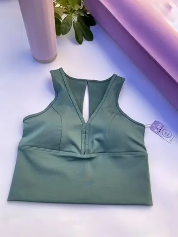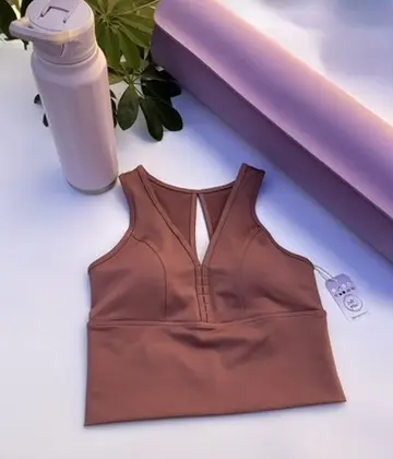 Diseño de espalda deportiva con tirantes dobles cruzados, que proporciona un soporte medio y un look moderno.